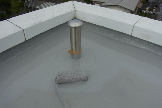 FRP防水とは、ガラス繊維と樹脂を用いて硬化させる工法です。高い防水性と耐久性が特徴のFRP防水では、基本的に脱気筒を使用しません。
